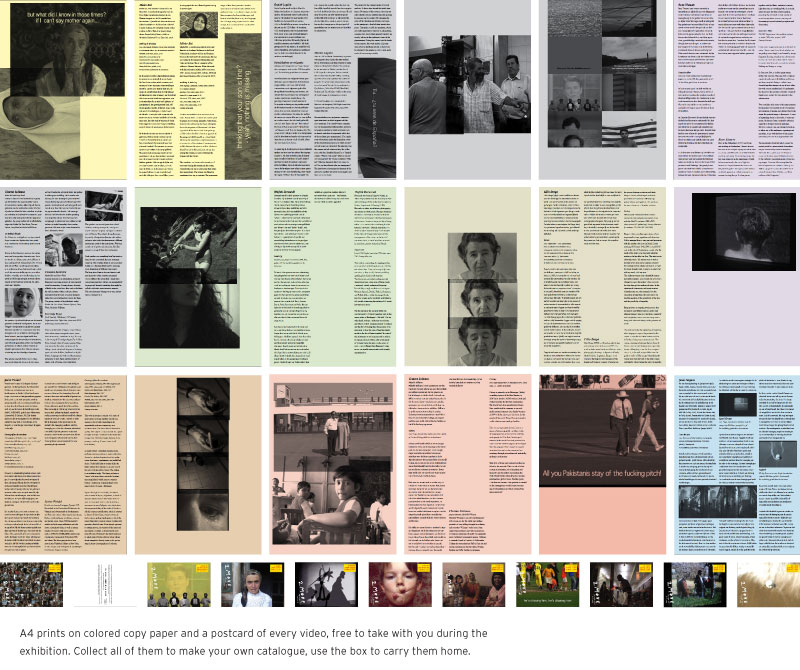 2Move. A video exhibition about migration for the Zuiderzee Museum (exhibiton design: Paul Toornend). Design graphics, catalogue, poster and invitation. Cardboard boxes were used as a base for the graphics in the exhibition. The feeling of moving, putting your stuff to a storage place... The catalogue is box with black silkscreen on cardboard. You can buy this empty box at the counter, and fill it with the copies and postcards while walking through the exhibition. This project was also made together with Atelier Made.